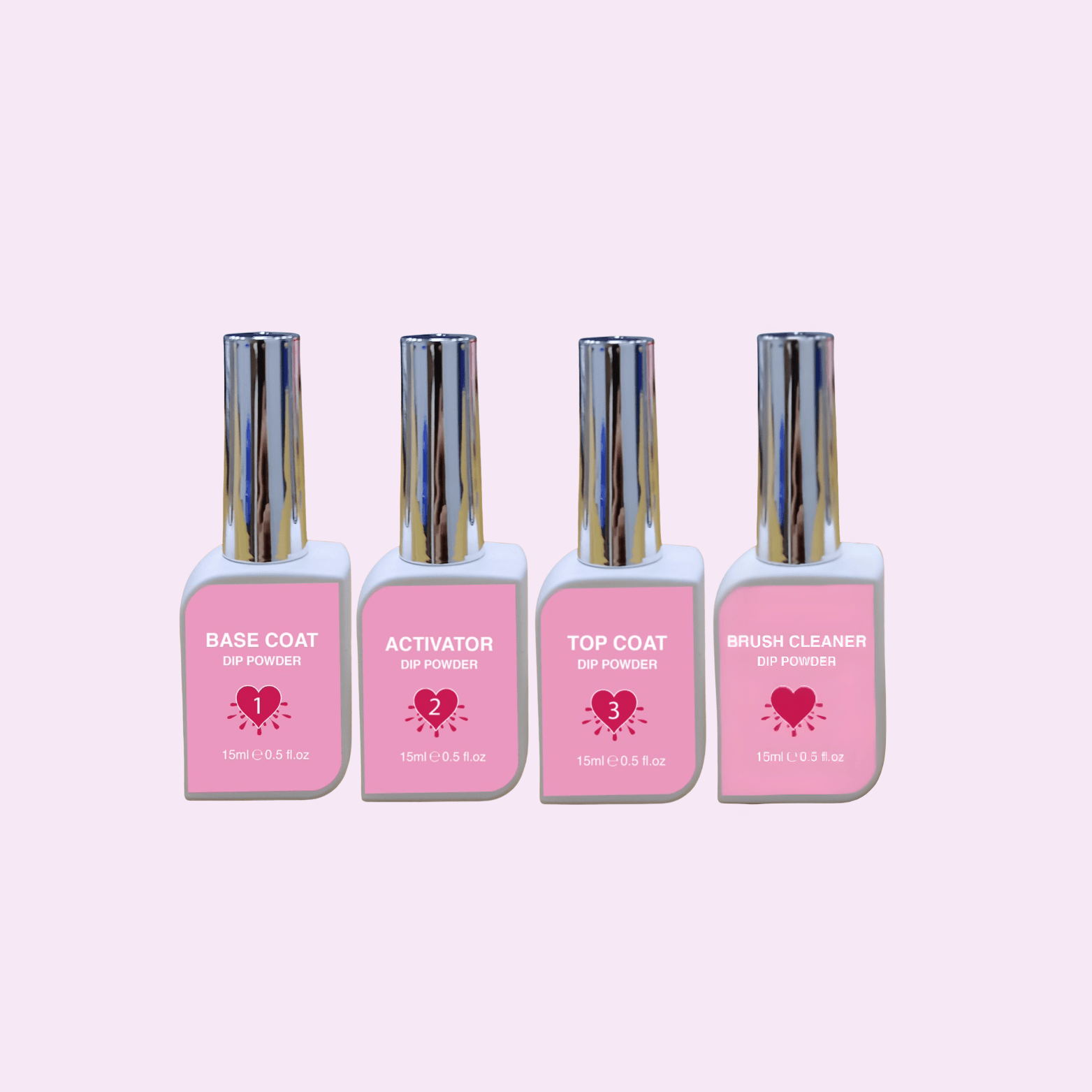 Le kit de liquides comprend tous les éléments nécessaires pour garantir une application idéale du Dipping Powder.